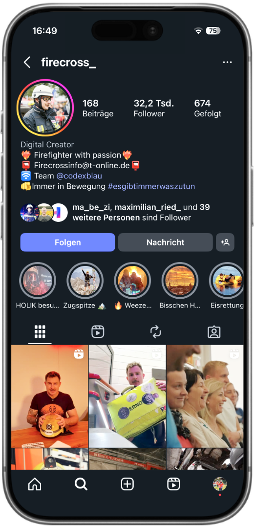 Hinter Firecross steht Bernd, Feuerwehrmann und Ausbilder für die Heißbrandausbildung – jemand, der das Feuer nicht nur löscht, sondern versteht. Seine Reels sind spektakulär, actionreich und mit beeindruckender Bildsprache inszeniert. Bernd zeigt die Wucht, die Hitze und die Intensität des Feuers so, wie man sie sonst nur im Brandcontainer erlebt. Er arbeitet mit starken Lichtmomenten, Rauch, Perspektiven und Bewegung – und fängt die Faszination Feuerwehr mit filmischer Qualität ein. Firecross steht für Leidenschaft, Präzision und Emotion – für Bilder, die unter die Haut gehen. Jeder Clip ist eine Hommage an die Einsatzkräfte, die ins Feuer gehen, wenn andere zurückweichen.